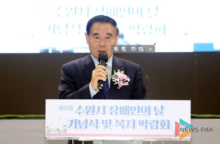 뉴스팍 배상미 기자 | 수원특례시의회 이재식 의장은 17일, 수원종합운동장 실내체육관에서 열린‘제45회 장애인의 날 기념식 및 복지박람회’에 참석했다.
