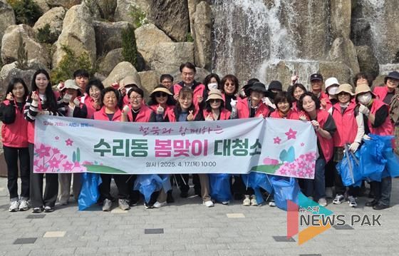 뉴스팍 배상미 기자 | 군포시 수리동에서 지난 17일 주민들과 함께 2025년 봄맞이 대청소를 실시했다.