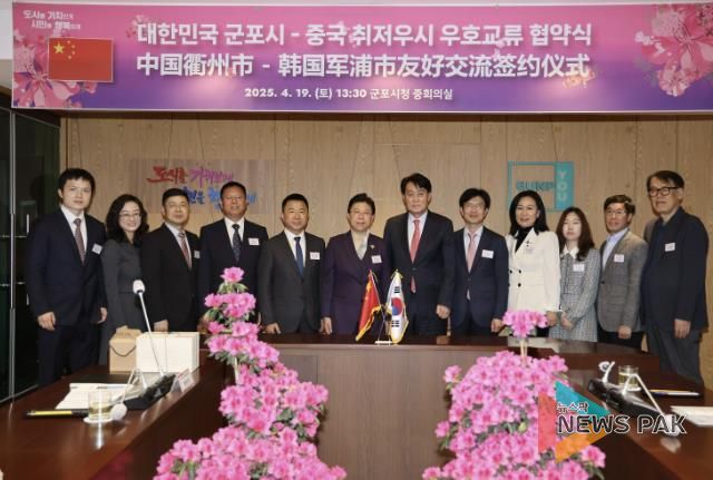 뉴스팍 배상미 기자 | 군포시는 4월 19일, 2025년 군포철쭉축제를 축하하기 위해 방문한 중국 저장성 취저우시와 바둑을 중심으로 하는 우호교류 협약을 체결했다고 밝혔다.