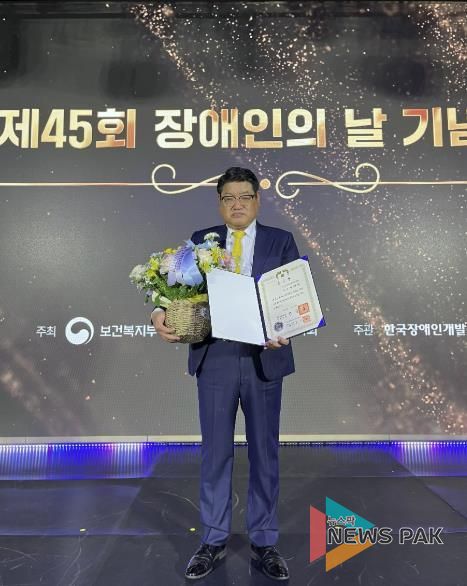 뉴스팍 배상미 기자 | (사)경기도장애인정보화협회 군포시지회장이면서 (사)경기도장애인정보화협회 회장인 이세항 회장이 정부로부터 장애인 정보격차해소 및 일자리 창출에 기여한 공로를 인정받아 ‘제45회 장애인의 날’을 맞아 대통령표창을 수상했다.