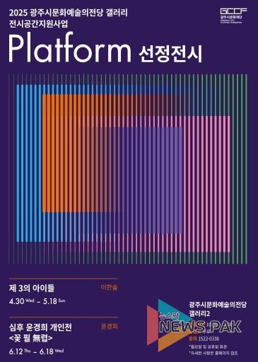 뉴스팍 이화형 기자 | (재)광주시문화재단이 오는 4월 30일부터 ‘2025 광주시문화예술의전당 갤러리 전시공간지원사업 'Platform'’ 선정전시를 개최한다고 밝혔다.