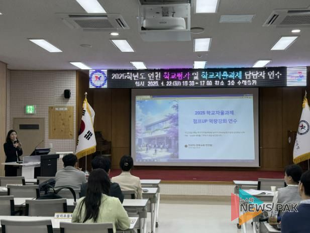 뉴스팍 배상미 기자 | 경기도연천교육지원청은 4월 23일 오후 4시, 연천교육지원청 수레울관에서 학교의 자율성과 실행력을 높이기 위한 실천 중심의 교육정책으로서, 2025년 상반기‘학교자율과제 점프 UP 역량강화 연수’를 개최했다. 본 연수는 관내 공립 유·초·중·고·특수학교의 자율과제 업무담당자를 중심으로 실시됐으며, 정책 실행의 실무 주체로서 학교의 자율역량 강화를 뒷받침하는 실질적 계기가 됐다.