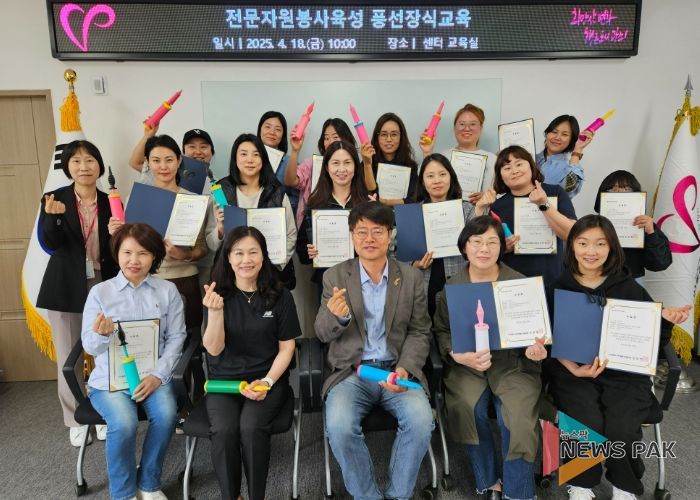 뉴스팍 이화형 기자 | 사단법인 광주시자원봉사센터는 지난 3월 19일부터 매주 2회씩 총 10회(20시간)전문봉사육성 일환 ‘풍선장식교육’을 진행, 4월18일 수료식을 가졌다.