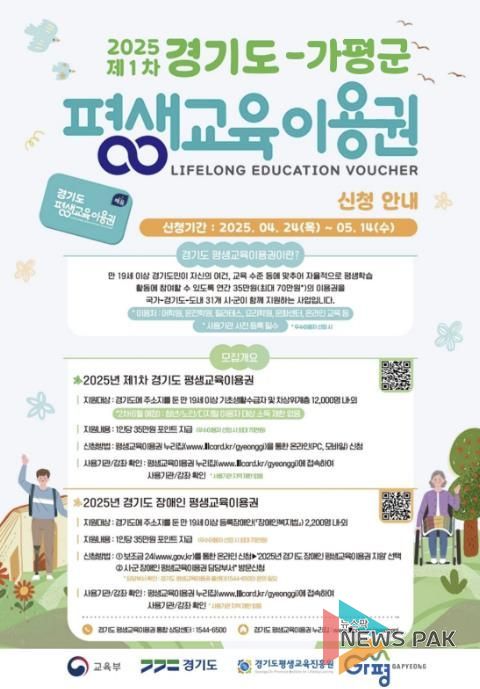 뉴스팍 배상미 기자 | 가평군은 장애인의 사회참여 확대와 삶의 질 향상을 위해 장애인 평생교육 지원사업을 본격 추진한다고 24일 밝혔다.