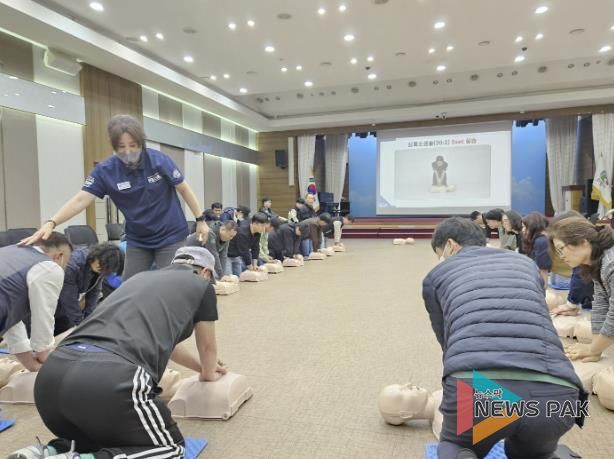 뉴스팍 류은정 기자 | 의왕시는 지난 24일 시청 대회의실에서 현업업무 종사자를 대상으로 심폐소생술 등 응급처치 교육을 실시했다.