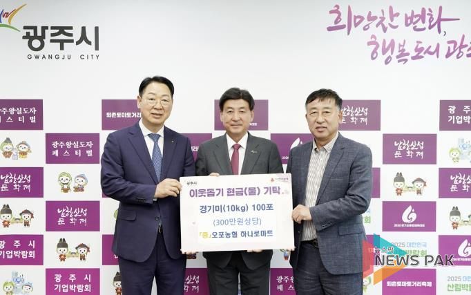 뉴스팍 이화형 기자 | 광주시 오포농업협동조합은 지난 28일 오포 하나로마트와 함께 광주시청을 방문해 학대 피해 아동 가정을 위해 써달라며 백미 100포(10㎏, 300만 원 상당)를 기탁했다.