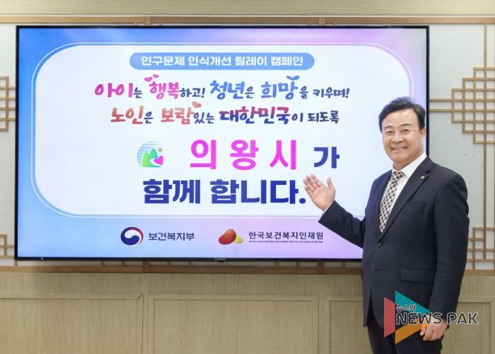 뉴스팍 류은정 기자 | 김성제 의왕시장은 지난 1일 보건복지부와 한국보건복지인재원이 주관하는 “인구문제 인식개선 릴레이 캠페인”에 동참, 인구문제에 대한 사회적 관심을 촉구했다.