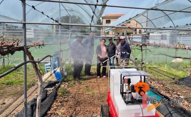 이와 함께 도입된 이동형 포도 과원 맞춤형 스마트 방제기는 리모컨으로 조작되며, 음성안내 기능을 갖춰 장애물 회피, 소모품 교체 시점 등을 안내해 고령 농업인의 작업 편의성을 높였다. 특히 포도 재배 환경에 맞춰 바퀴 조향장치를 탑재해 하우스 비닐을 손상시키지 않도록 설계됐고, 수확기에는 방제기를 운반차로 활용할 수 있도록 분리형 구조로 제작됐다.