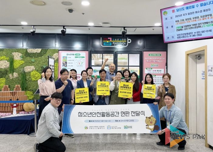 뉴스팍 류은정 기자 | 의왕시청소년재단 산하 의왕시청소년수련관은 지난 15일 꿈누리카페 고천점에서 ‘Youth Safety Zone’(청소년안전활동공간) 현판 전달식을 개최했다.