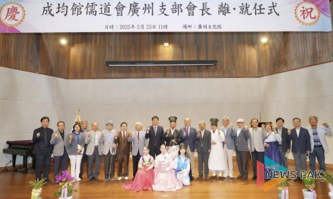 뉴스팍 이화형 기자 | 성균관유도회 광주지부는 5월23일 광주문화원 강당에서 제14대 양승균 이임회장과 제15대 이단우 취임회장 이·취임식을 개최했다.