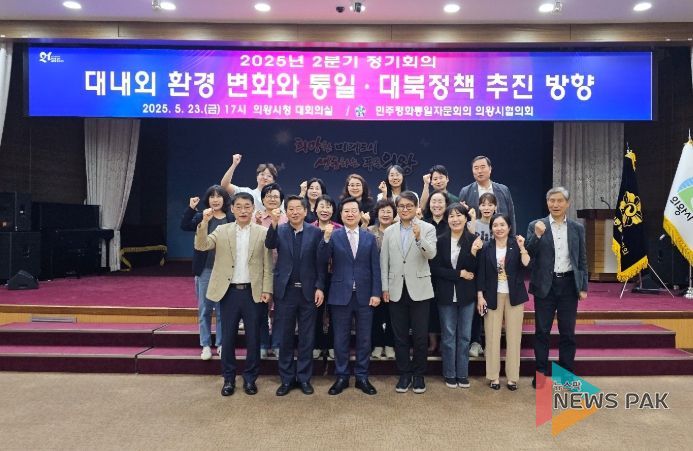 뉴스팍 류은정 기자 | 민주평화통일자문회의 의왕시협의회는 23일 의왕시청 대강당에서 자문위원, 관계자 등 30여명이 참석한 가운데‘대내외 환경 변화와 통일・대북정책 추진 방향’을 주제로‘2025년 2분기 정기회의’를 개최했다.