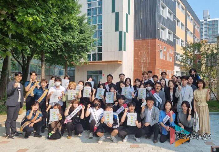 뉴스팍 배상미 기자 | 경기도교육청이 29일 ‘레츠그로우(Let’Grow) 프로젝트’ 운영교인 일산고등학교에서 진행한 ‘등굣길 제로텐(ZeroTen) 규약’을 통해 학교폭력 예방과 평화로운 학교문화 확산 캠페인을 지원했다.