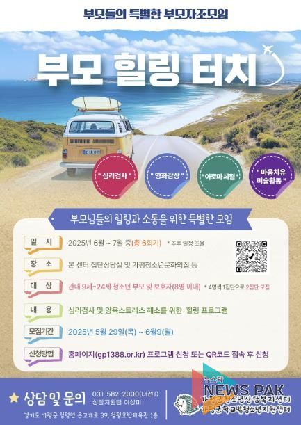 뉴스팍 배상미 기자 | 가평군청소년상담복지센터가 6월부터 청소년 자녀를 둔 부모와 보호자를 대상으로 부모자조모임인 ‘부모 힐링 터치’를 운영한다.