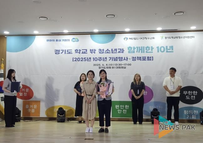 뉴스팍 류은정 기자 | 의왕시청소년재단 산하 의왕시학교밖청소년지원센터가 4일 경기도의회에서 개최된 경기도학교밖지원센터 10주년 기념식에서‘2025 경기도 학교밖청소년지원 유공 표창’을 수상했다.