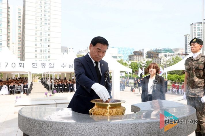뉴스팍 배상미 기자 | 수원특례시의회 이재식 의장이 6일, 제70회 현충일을 맞아 수원시 현충탑을 찾아 참배하며 순국선열과 호국영령의 숭고한 희생정신을 기렸다.