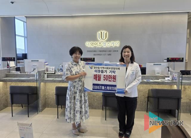 이번 정기후원은 지역사회에 대한 감사와 보답의 의미로 추진된 것으로 더와이즈헬스케어의원은 그동안 ▲2024년 경안동 바자회 100만 원 기부 ▲경안동 동민의 날 종합건강검진권 2매 기부 ▲2024~2025년 취약계층 의료비 지원사업 참여 등 다양한 사회공헌 활동을 이어오고 있다.