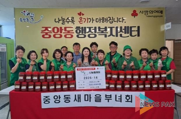 백경희 중앙동장은 “정성과 노고를 아끼지 않으신 부녀회에 깊이 감사드린다”며, “전달된 고추장이 어려운 이웃들에게 따뜻한 위로와 응원이 되길 바란다”고 전했다.