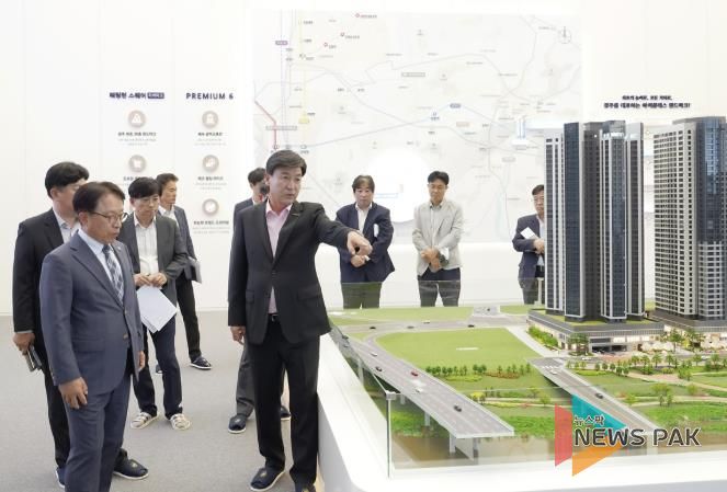 이번 현장 방문은 본격적인 분양을 앞두고 견본주택의 준비 상황을 직접 확인하고 시민들에게 신뢰받는 주거 공간 조성을 당부하기 위해 방세환 시장이 직접 방문했다.