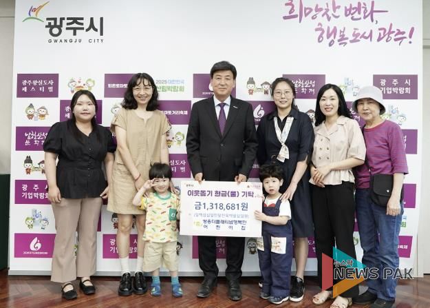 뉴스팍 이화형 기자 | 노아어린이집과 쌍용더플래티넘행복한어린이집은 지난 10일 광주시청을 방문해 각각 53만 원과 132만 원의 기탁금을 전달하며 어려운 이웃을 위한 따뜻한 나눔을 실천했다.