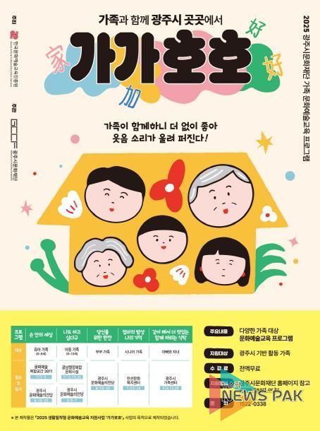 뉴스팍 이화형 기자 | (재)광주시문화재단은 2025 가족이 함께하는 문화예술교육 프로그램 ‘가가호호’ 프로그램 참여자를 모집한다고 밝혔다.