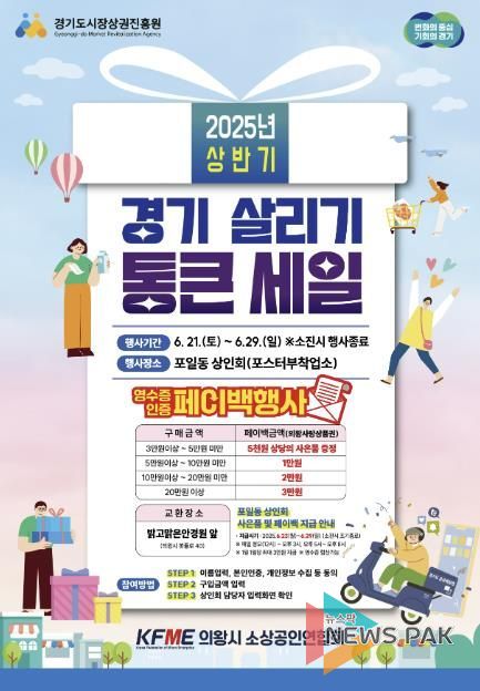 뉴스팍 류은정 기자 | 의왕시소상공인연합회와 의왕시 관내 7개 상권은 침체 된 경기 활성화를 위해“2025년 경기 살리기 통큰 세일”을 진행한다.