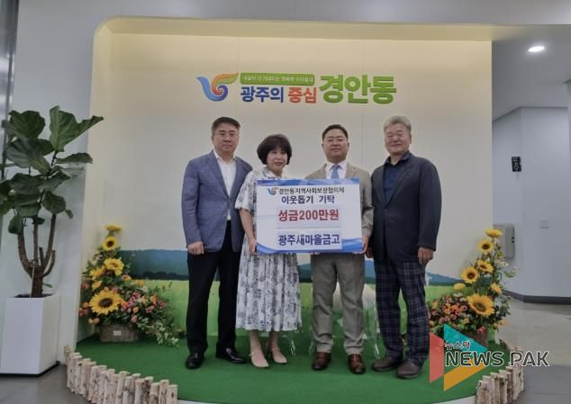 뉴스팍 이화형 기자 | 광주새마을금고 박수형 이사장은 지난 26일 지역 내 어려운 이웃을 위한 성금 200만 원을 경안동 지역사회보장협의체에 기탁했다.