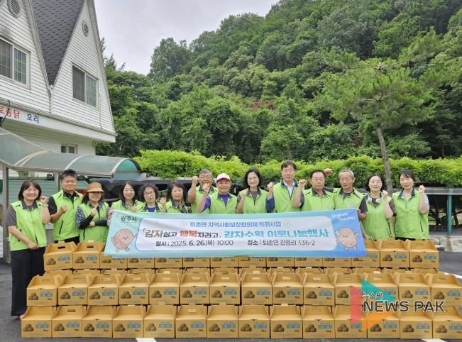 뉴스팍 이화형 기자 | 광주시 퇴촌면 지역사회보장협의체는 지난 26일 퇴촌면 관음리 일대 나눔 텃밭에서 수확한 감자 113박스(5㎏)를 지역 내 소외계층에게 전달하며 따뜻한 나눔 활동을 펼쳤다.