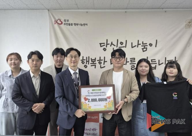 이날 전달식은 지난해 크리스마스 시즌 맞춤형 선물 지원에 이어 두 번째 기부로 단순한 후원에 그치지 않고 지속적인 지역사회 연계와 복지 증진을 위한 협약 체결도 함께 이뤄졌다. 전달된 후원금은 북부 무한돌봄행복나눔센터가 진행 중인 ‘트다;토닥’ 사업에 사용될 예정이다.
