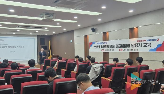 뉴스팍 이소율 기자 | 오산시는 지난 6월 27일 오산시 환경사업소에서 ‘2025년 상반기 유해화학물질 취급사업장 담당자 교육’을 실시했다고 밝혔다.