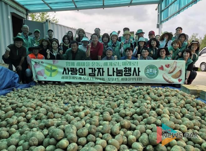 뉴스팍 이화형 기자 | 광주시 오포1동 새마을지도자협의회와 새마을부녀회는 지난달 29일 고산동 새마을 농장에서 ‘사랑의 감자 나눔’ 행사를 열고 정성껏 키운 감자 150박스를 수확했다.
