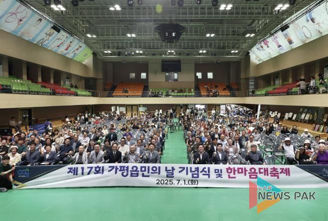 뉴스팍 배상미 기자 | 가평군 가평읍은 지난 1일 가평체육관에서 ‘제17회 가평읍민의 날 기념식 및 한마음 대축제’를 열고 지역민 1,000여 명이 참여한 가운데 화합과 지역발전 의지를 다졌다고 밝혔다.