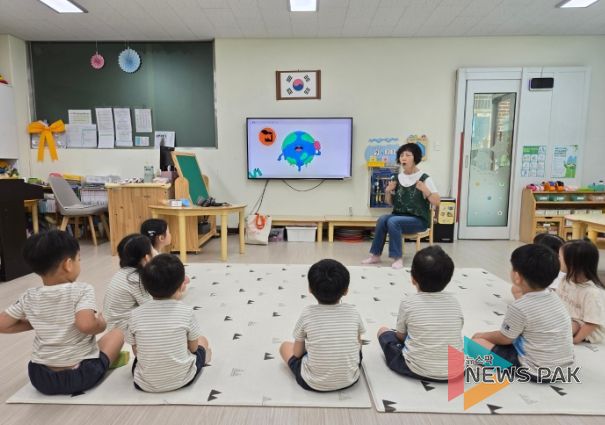 뉴스팍 배상미 기자 | 안양샘유치원은 7월 11일 안양시 기후변화 체험교육센터 협조로 전문 환경강사가 유치원에 방문하여 유아들의 눈높이에 맞춘 ⌜찾아가는 기후변화 환경학교⌟을 운영했다.
