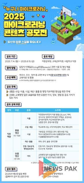공모 기간은 14일부터 8월 15일까지이며, 담당자 이메일을 통해 접수 가능하다. 접수된 작품은 심사를 거쳐 9월 중 우수작을 선정해 시상할 예정이다. 수상작은 도교육청 연수 시스템에 탑재되어 활용된다.
