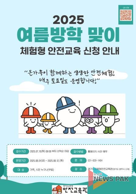 임윤재 경기도교육청안전교육관장은 “가족과 함께하는 이번 여름방학 체험형 안전교육은 실제 위기 상황에서의 대처능력을 키우는 데 큰 도움이 될 것”이라며 “모두가 안전을 생활화할 수 있도록 다양한 체험 중심 교육을 지속적으로 제공하겠다”고 말했다.