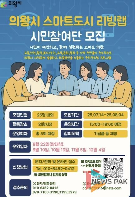뉴스팍 류은정 기자 | 의왕시는 지역 내 다양한 도시문제 해결을 위한 ‘의왕시 스마트도시 리빙랩 시민참여단’을 다음 달 4일까지 모집한다고 밝혔다.