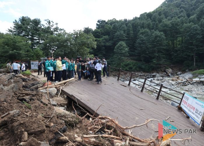 뉴스팍 배상미 기자 | 가평군이 이번 집중호우로 잠정 피해액이 342억원에 달한다며 21일 오후 경기도에 특별재난지역 선포를 공식 건의했다.