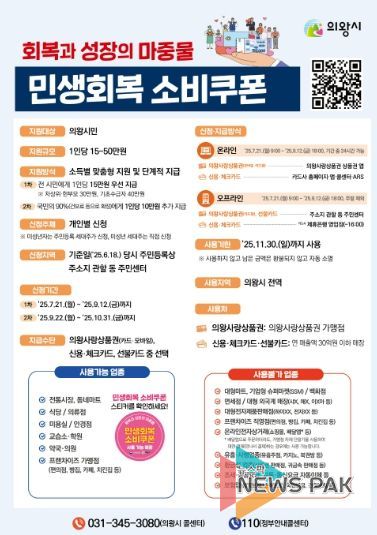 김성제 의왕시장은 “시민들이 빠짐없이 소비쿠폰을 받을 수 있도록 적극적인 안내와 신속한 지급에 총력을 다하겠다”고 전했다.