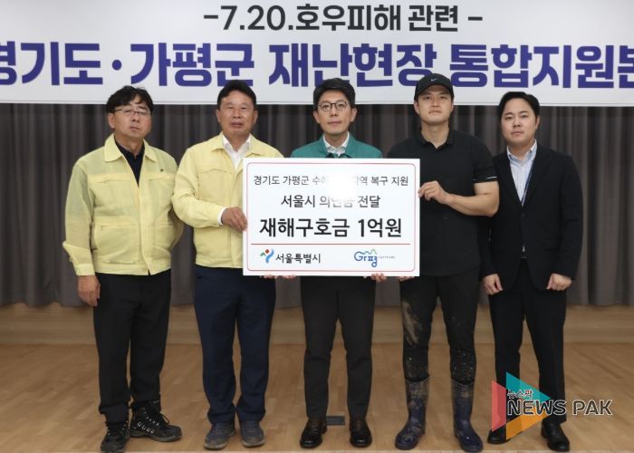 뉴스팍 배상미 기자 | 서울특별시가 기록적인 집중호우로 큰 피해를 입은 가평군에 1억 원의 재해구호금을 긴급 지원했다.