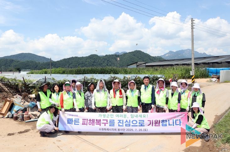 뉴스팍 배상미 기자 | 수원특례시의회는 최근 집중호우로 큰 침수 피해를 입은 가평군 조종면 일원을 찾아 수해 복구를 위한 자원봉사활동을 전개했다.