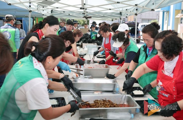 뉴스팍 배상미 기자 | 연일 계속되는 무더위 속에서도 회원들의 회비 등으로 가평군 수해복구 현장에 도시락을 전달한 이들이 있어 감동을 주고 있다.