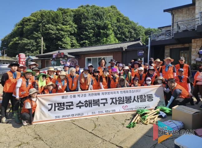 뉴스팍 류은정 기자 | (사)의왕시종합자원봉사센터는 7월 25일 집중호우로 피해를 입은 가평군 상면 율길리 농가를 방문해 수해복구 지원 자원봉사 활동을 펼쳤다.