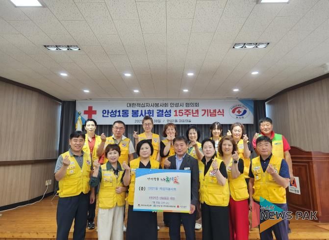 뉴스팍 이소율 기자 | 대한적십자 안성1동 봉사회는 결성 15주년을 맞아 지난 30일 안성1동 취약계층을 위한 생활용품을 후원했다.