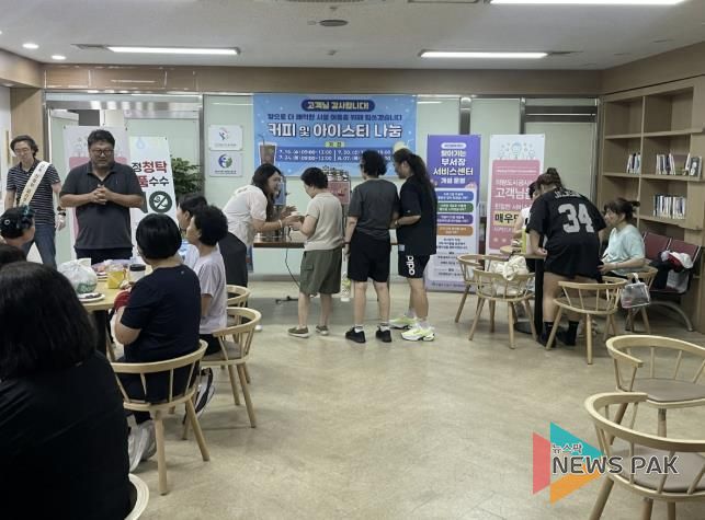 행사는 매주 수요일과 목요일, 1층 고객 휴게실에서 격주로 번갈아가며 진행되며, 시원한 커피와 아이스티를 제공함으로써 무더위에 지친 이용객들에게 작지만 진심 어린 쉼과 청량함을 전하고 있다. 특히 기온이 급상승하는 날에는 얼음 생수를 제공해, 국민체육센터를 무더위 쉼터 역할을 겸한 안전한 휴식 공간으로 자리매김하게 하고 있다.