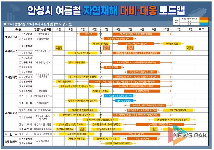 뉴스팍 이소율 기자 | 안성시는 여름철 반복되는 풍수해(극한폭우 및 태풍)로부터 시민의 생명과 재산을 보호하기 위해 '여름철 풍수해 대비·대응 로드맵’을 배포하고 본격적인 추진에 나섰다.