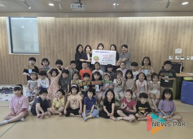이날 기탁된 성금은 지난 6월 20일 고천파크루체어린이집에서 ‘지구도 살리고 환경도 살리고’를 주제로 각 가정에서 사용하지 않는 다양한 물품의 기부로 운영한 플리마켓 수익금을 통해 마련됐다.