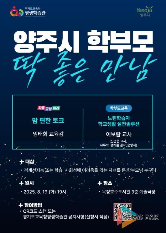 오는 19일부터 10월 25일까지 진행되는 이번 프로그램은 평생학습관은 지역의 평생교육 활성화와 학부모교육 확대를 위해 협약을 체결한 기기관(양주·수원·오산시)을 거점으로 진행된다.