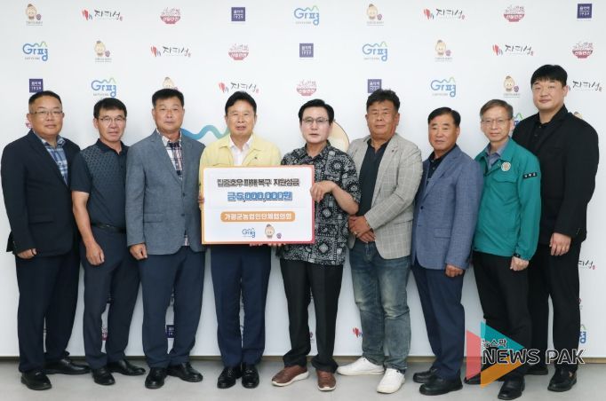 뉴스팍 배상미 기자 | 가평군은 가평군농업인단체협의회가 최근 집중호우로 인한 수해 피해 지원을 위해 회원들이 자발적으로 모금한 성금 500만 원을 12일 군에 기탁했다고 밝혔다.