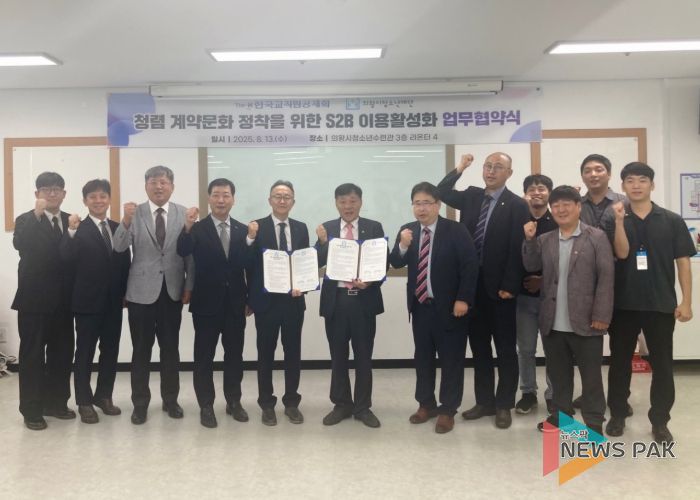 뉴스팍 류은정 기자 | 의왕시청소년재단은 청렴한 계약문화 정착을 위해 한국교직원공제회와 '지정정보처리장치 S2B 이용 활성화 업무협약'을 체결했다고 밝혔다.