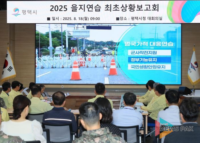 뉴스팍 이소율 기자 | 평택시는 지난 18일 전시종합상황실에서 정장선 시장과 간부 공무원, 군·경 및 관계기관 관계자 등 90여 명이 참석한 가운데 2025년 을지연습 최초상황보고회를 개최했다.