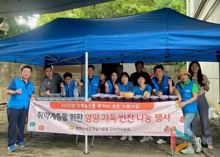 뉴스팍 이소율 기자 | 평택시 바르게살기운동 진위면위원회는 지난 20일 지역농산물 먹거리 지원사업의 하나로 취약계층 40가구에 여름 김치 나눔 지원을 했다.